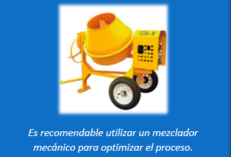 Tercero: Es importante la forma en cómo se llevará a cabo el mezclado de los mismos. Es recomendable realizarlo en una unidad mezcladora (trompo), ya que, si se hace con pala, no se logra una buena homogeneidad de la mezcla y se consume aproximadamente 20% más de cemento.